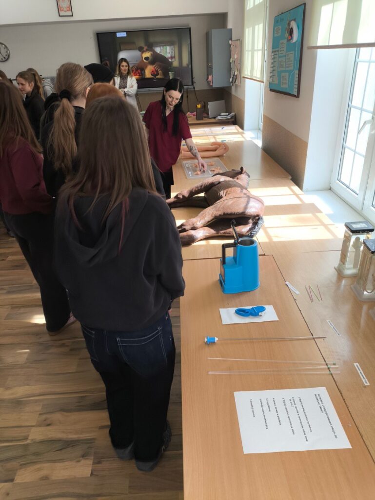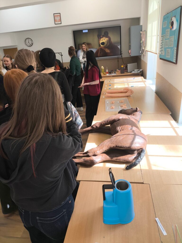 Uczestnicy mieli również okazję zapoznać się z nowoczesnym zapleczem dydaktycznym szkoły podczas Dni Otwartych. Zaprezentowano m.in. pracownię rozrodu i inseminacji, wyposażoną w fantom źrebięcia umożliwiający symulację komplikacji podczas porodu, modele krów do doskonalenia umiejętności inseminacji oraz badań per rectum z rozpoznawaniem struktur obecnych na jajnikach. Dodatkowo uczestnicy mogli zobaczyć szeroki wachlarz sprzętu inseminacyjnego dla samic różnych gatunków oraz zaplecze do obróbki nasienia. Można było także wykonywać wymazy. W drugiej sali można było szyć żywe tkanki, osłuchiwać pracę serca na fantomie psa oraz skorzystać z manekina do nauki intubacji. Na szkolnym podwórku odbywał się pokaz maszyn rolniczych oraz prezentacja aut do nauki jazdy kategorii B. Nasi goście na pewno nie wyszli głodni – na wszystkich czekał grill oraz pyszne hamburgery ufundowane przez Owcze Klimaty – Państwo Maliccy z Komalw oraz Radę Rodziców. Serdecznie gratulujemy zwycięzcom! Wszystkim uczestnikom i ich opiekunom dziękujemy za przybycie i udział w konkursie.